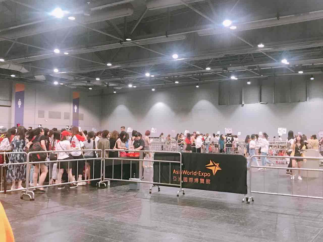 これホールに入る手前にある空間で、ここがスタンディングの待機列。