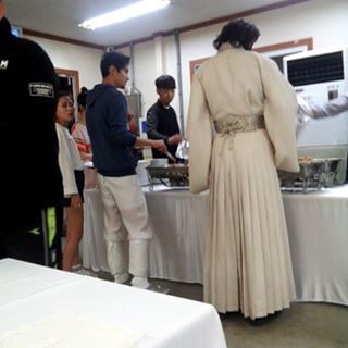食事のときに、血まみれのスヒョクさんと髭姿の僕が食堂に行くと食堂のおばさんたちが優しくしてくれた。